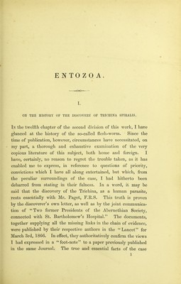 Entozoa : an introduction to the study of helminthology, with reference, more particularly, to the internal parasites of man / by T. Spencer Cobbold.
