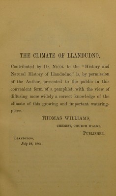 Credit: The climate of Llandudno / by James Nicol. Source: Wellcome Collection.