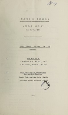 Credit: [Report 1960] / Medical Officer of Health, Tiverton Borough. Source: Wellcome Collection.