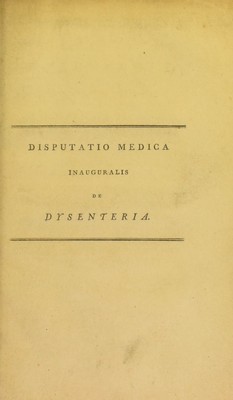 Credit: Disputatio medica inauguralis de dysenteria ... / eruditorum examini subjicit Jacobus A. Bannerman. Source: Wellcome Collection.