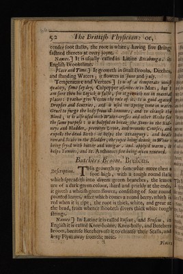 Botanologia. The Brittish physician, or, The nature and vertues of English plants. Exactly describing such plants as grow naturally in our land, with their ... applications and vertues, physical and astrological uses, treated of, each plant appropriated to the several diseases they cure ... / [Robert Turner].
