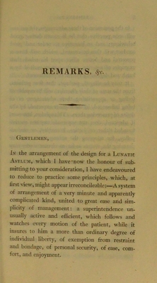 Remarks on the construction of public hospitals for the cure of mental derangement ; read to a committee of inhabitants of the city of Glasgow.