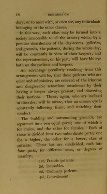 Remarks on the construction of public hospitals for the cure of mental derangement ; read to a committee of inhabitants of the city of Glasgow.