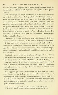 Credit: Etudes sur les maladies du foie : cancer (épithéliome), sarcome, mélanomes, kystes non parasitaires, angiomes / Par V. Hanot [et] A. Gilbert. Source: Wellcome Collection.