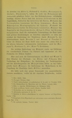 ![Wihon Tilbury Fox -), ITdlier ■*), Iloiuard Dämon *), liayer, Chausit, Devergie, Erasmus Wilson und Anderson haben ihre Systeme nicht mehr den äusseren Formen, sondern mehr weniger dem Wesen der Krankheit und dem Bau der Organe anzupassen gesucht. Unter den deutschen Sclirittstellern über Hautkranklieiten lieben wir noch hervor: Peter Frank ^), welcher die Hautkrankheiten in acute und chronische, in idiopathische und symptomatische eintheilte; L. A. Struve Schönlein, der dieselbe Eintheilung beibehielt und den Pilz bei Favus entdeckte, und überhaupt der eigentliche Gründer der damaligen naturhistorischen Schule war; C. H. Fuchs'), V. A. Hiecke^), Josef Frank Veiel ^^), Froriep^^), Behrend^'^), Gu- stav Simoti ^3), welch' letzterer die pathologischen Veränderungen der Hautkrankheiten gründlich und wissenschaftlich bearbeitete. V. Baerensprung^'^), einer der hervorragendsten Dermatologen unseres Jahrhunderts hat ausser mehreren anderen ausgezeichneten Abhandlungen auch noch folgende Werke veröffentlicht: Herpes Zoster, Pemphigus. A. Kleinhans'^'>), J. Rosenbaum ^'^). On diseases of tlie skin, London -1867. Skin diseases, London 1864, 1871 und 1873. •*) Handbook of skin diseases, London 1864. *) Lessons of the structure of the skin, Philadelpliia 1868. •'') De curandis hominum morbis. 179'2. '■) Uebersicht der Hautkrankheiten, mit 4 illuminirten Kuiifertafeln, Berlin 1829. ■'j Die krankhaften Veränderungen der Haut und ihrer Anhänge. Göttingen 1840. Versuch einer ganz neuen Nomenclatur. Handbuch der Krankheiten der Haut. Dresden 1841. ) Die Hautkrankheiten, übersetzt von Dr. Ch. G. Voigt, Leipzig 1843. ') Grundzüge der Behandlung der Hautkrankheiten an der Heilanstalt zu Canstatt. 1840, 1802, 1853, 1854, 18,62. ) Atlas der Hautkrankheiten. Monographische Darstellung der nicht syphilitischen Hautkrankheiten, Leipzig 1869. '•'') Die Hautkranklieiten durch anatoinisclie Untersuchungen erläutert, Berlin 1851. '*) Beiträge zur Pathologie und Anatomie der menschlichen Haut. Lei])- zig 1848. — Die Hautkrankheiten. 1. Lief. 1859. '■'') Conipendinm der Hautkrankheiten, Erlangen 1866, und die parasi- tären Haulallectiorien, Erlangen 1864. ') Zur Geschichte und Kritik der Lclire von den Hautkrankheiten, Halle 1844.](https://iiif.wellcomecollection.org/image/b21445898_0031.jp2/full/800%2C/0/default.jpg)