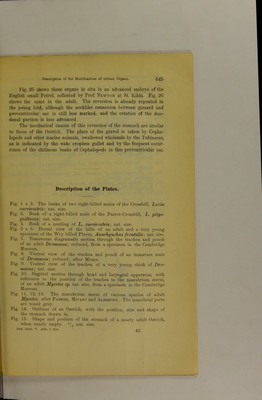 Description of the modifications of certain organs which seem to be illustrations of the inheritance of acquired characters in mammals and birds / by Hans Gadow.