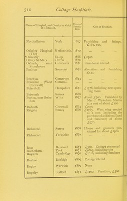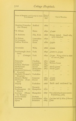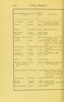 Cottage hospitals general, fever, and convalescent : their progress, management, and work with an alphabetical list of every cottage hospital at present opened; and chapters on mortuaries, the relative mortality of large and small hospitals, and cottage hospitals in America / by Henry C. Burdett.