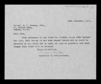 Letter from J B S Haldane's Secretary to E K Bowman Ltd.