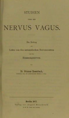 Studien über den Nervus vagus; ein Beitrag zur Lehre von den automatischen Nervencentren und den Hemmungsnerven / von Ottomar Rosenbach.