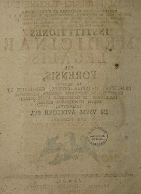Institutiones medicinae legalis, vel forensis, in quibus praecipuae materiae civiles, criminales et consistoriales, secundum principia medicorum decidendae ... traduntur ... / [Hermann Friedrich Teichmeyer].