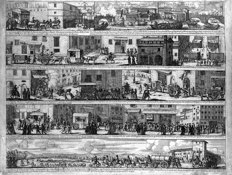 M0016011: Episodes in the plague in Rome of 1656-1657. Public Domain Mark. Source: Wellcome Collection.