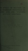 The effect of dilution on the hydrogen potentials of acetic acid and "standard acetate" solutions / by G.S. Walpole. In copyright. Source: Wellcome Collection.