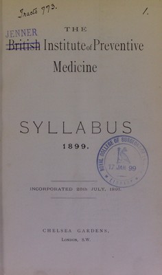 Syllabus 1899 / The British Institute of Preventive Medicine.