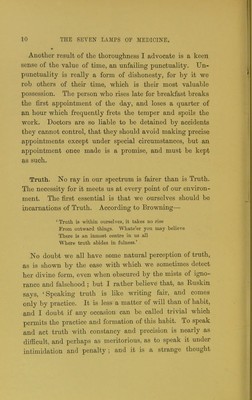 Seven lamps of medicine : inaugural address delivered at the London School of Medicine for Women, October 1, 1887 / by Mrs. Scharlieb.
