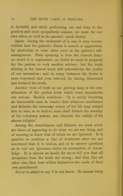 Credit: Seven lamps of medicine : inaugural address delivered at the London School of Medicine for Women, October 1, 1887 / by Mrs. Scharlieb. Source: Wellcome Collection.