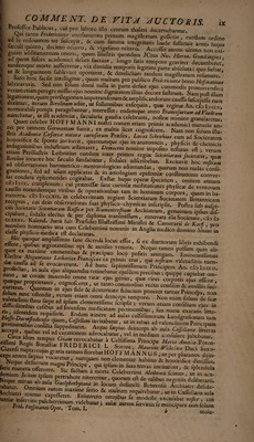 Opera omnia physico-medica denuo revisa, correcta et aucta, in sex tomos distributa, quibus continentur doctrinae solidis principiis physico-mechanicis, et anatomicis, atque etiam observationibus clinico-practicis superstructae ... / Cum vita auctoris [auctore J.H. Schultze] et ejus praefatione de differente medicinae et medicorum statu.