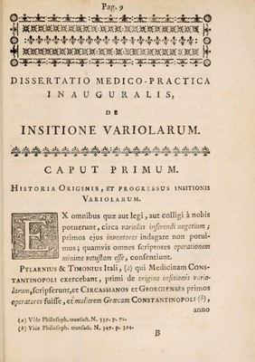 Credit: Dissertatio medico-practica inauguralis, de insitione variolarum ... / Eruditorum examini submittit Joannes Van-Brugh Tennent. Source: Wellcome Collection.