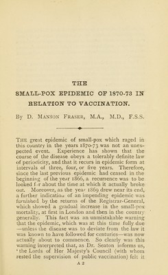 The small-pox epidemic of 1870-73 in relation to vaccination / by D. Manson Fraser.
