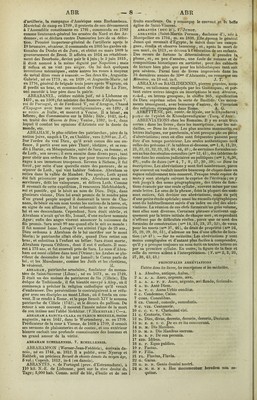 ![ABE ABE de Nantes, m. en 1142. Destiné par sa naissance à la cav- rièie des armes, il préféra se consacrer aux luttes de la dialectique qui passionnaient alors les esprits. Dès l’âge de 16 ans, il va d’école en école, défiant et battant élèves et maîtres; à Paris il se fait disciple de Guillaume de Champeaux, et devient bientôt pour son maître un terrible adversaire. Agé de 22 ans, il lui oppose une école établie d’abord à Melun, puis à Corbeil, puis à Paris et où afflue la .jeunesse de toute l’Europe. C’était le moment de la que- relle des réalistes et des nominalistes ; Abélard paraît s’être placé enti-e les deux systèmes, et avoir soutenu que les Idées générales ne sont nî de simples mots [flahis vocis), ni des êtres réels et indépendants, mais des conceptions fixes et nécessaires de l’esprit, système intermédiaire qu’on a nommé conceptualisme. Abélard fut quelque temps distrait de ses goûts philosophiques par sa passion pour Héloise, nièce du chanoine Fulbert. Il se fit confier l’éducation de la jeune fille, et bien qu’il eut 39 ans, et elle 17, il lui in- spira une vive passion et la séduisit ; découverts, ils s’en- fuirent en Bretagne. Abélard, en épousant Héloïse, crut apaiser Fulbert; mais bientôt celui-ci se vengea par une atroce mutilation. Héloise prit le voile au couvent d’Ar- genteuil, et son époux entra dans le cloître de Saint-Denis. Mais bientôt il rentre dans la lice ; il ouvre une nouvelle école, et poursuivant l’application de la dialectique à la théologie, il donne un Traité sur la Tiinité qui fut attaqué, et condamné par le concile de Soissons (1122|. Itepoussé par les moines de Saint-Denis, il se retira près de Nogent-sur-Seine, et se bâtit un ermitage qu’il nomma Paraclet (consolateur). Une foule de disciples vinrent peu- pler cette nouvelle Thébaide. Plus tard le Paraclet devint un couvent dont Héloïse fut l’abbesse. Au monastère de SaintGildas, près de Vannes, Abélard ne fut pas plus heureux qu’à Saint-Denis ; il y vo\ilut introduire plusieurs réformes, qui lui firent de violents ennemis. D’autres malheurs l’attendaient encore : accusé d’hérésie, il sou- tint au concile de Sens, devant le roi Louis VH, une lutte fameuse contre Saint-Bernard qui, en portant la question sur le terrain de l’autorité, ferma la bouche au subtil dialecticien. Abélard, condamné par le concile et par le pape Innocent II, se retira auprès de l’abbé de Chmy, Pierre le Vénérable, qui le réconcilia avec Saint- Bernard, et ses'dernières années se passèrent dans les exer- cices de la piété. Ce qui fait la véritable importance d’Abé- lard, c’est qu’il commença à proclamer l’indépendance de la philosophie ; sans le savoir, il tend à en faire une puis- sance rivale de la religion ; c’était la conséquence inévi- table de l’esprit de controverse qu’il voulait introduire dans les questions religieuses, et ce fut ce qui arma Saint- Bernard contre lui. Ses œuvres ont été publiées à Paris, en 1616, par Fr. d’Amboise, 1 vol. in-4®. Le 5® vol. de Martène, Thésaurus noms Anecdotorum, contient sa Théologie chrétienne. M. Cousin a publié en 1836 des traités inédits d’Abélard, Dialectica, Sic et non, etc. et, en 1849, le 1®''vol. d’une édition complète de ses œuvres, in-4®. Les lettres d’Héloïse et d’Abélard ont souvent été publiées à part. Les lettres d’Abélard, froides et raides dans leur sévérité scolastique, font un contraste choquant avec la passion naïve et touchante de celtes d’Héloïse. Ce recueil est de- venu populaire au xviii® siècle par les vers de Pope et de ses imitateurs français. Il a été traduit en prose par Dom Gervaise, 1723 et 1799, et par M. Oddoul, avec un Essai historique par M. et M“® Guizot, 1837, 2 vol. in-8® et 1853 en 1 vol. in 8®. Les travaux les plus importants sur Abé- lard sont ceux de M. Cousin dans ses Fragments de Philoso- phie Scolastique, 1 vol. in-8®, 1840, et de M. de Rémusat : Abélard, 2 vol. in-8®, 1845. D—r. ABELIN (Jean-Philippe), historien, né à Strasbourg, m. en 1646, a publié, sous le nom de Gottfried ou Gotho- fredus, une foule d’utiles écrits historiques : Théâtre euro- péen, en allemand, Francf., 1662-1738, 12 vol. in-fol.; le l®*’ vol. est de lui; c’est l’histoire de l’Europe de 1617 à 1629; les 17®, 18®, 19® et 20® tomes du Mercurius Gallobel- yicus, en latin, histoire de l’Europe et surtout de la France de 1628 à 1636 ; le 12® vol. de VHistoire des Indes Orientales, en latin, Francf., 1628, fol., rare, etc. ABELLA ou AVELLA , v. de l’anc. Italie (Campanie), auj. Avella Vecchia. Ses noisettes ou jIreKnes étaient célèbres. ABELLINUM, v. de l’anc. Italie (Samnium) chez les Hirpins; auj. Avellino. ABELLY (Louis), théologien français, né en 1603, m. en 1691, curé de S*-Josse, à Paris, puis évêque de Rodez, a laissé une Vie de St Vincent de Paul, réimprimée à Paris en 1823, 5 vol. in-12, et d’autres ouvrages peu connus, entre autres la Moelle théologique, qui l’a fait appeler par Boileau le moelleux. Il fut l’ennemi des Jansénistes. ABELONISTES, ABÉLITES, secte d’hérétiques qui faisaient vœu de chasteté dans le mariage. Ils parurent au IV® siècle de J.-C., habitaient un bourg près d’Hippone, et prirent leur nom de ce que, comme Abel, fils d’Adam, ils n’avaient point de postérité. ABEN, signifie, dans les langues sémitiques, fils. ABENAQÜIS, peuple indigène de l’Amérique du N., de la famille lennape. On en trouve, au N. des Etats- Unis, mélangés avec les Mohicans et les Mohawks. ABENCËRAGES, puissante tribu maure du royaume de Grenade. Le dernier roi, Boabdil, en massacra, dit-on, 36 dans l’Alhambra, vers l’an 1485, à l’instigation des Zé- gris, tribu rivale, qui accusaient l’Abencérage Aben-Ha- mad d’adultère avec la l’eine Duraxa; le page de l’un d