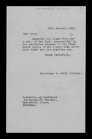 Letter from J B S Haldane's Secretary to the North Eastern Agricultural Co-operative Society
