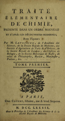 Credit: Traité élémentaire de chimie, présenté dans un ordre nouveau et d'après les découvertes moderns / [Antoine Laurent Lavoisier]. Source: Wellcome Collection.