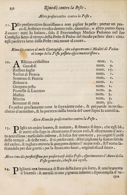 Credit: Il medico per tutti in tempo di peste : o sia Raccolta di validissimi rimedj preservativi, curativi, spurgativi ... Dati alla luce con approvazione, e per ordine del Mag. della Sanità di Venezia l'anno della peste MDCXXX / et ora fatti ristampare ... da G.C: S. ; con la giunta di alcuni specifici, adoperati nell'ultima peste di Marsiglia, l'anno MDCCXXII ; tradotti dalla lingua francese, nell'italiana. Source: Wellcome Collection.