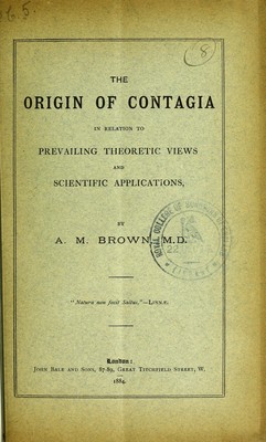 The origin of contagia : in relation to prevailing theoretic views and scientific applications / by A.M. Brown.