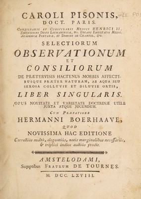 Selectiorum observationum et consiliorum de praetervisis hactenus morbis affectibusque praeter naturam, ab aqua seu serosa colluvie et diluvie ortis, liber singularis ... / Opus ... Cum praefatione Hermanni Boerhaave, quod novissima hac editione correctiùs multò, elegantiùs, notis marginalibus necessariis, & triplici indice auctiùs prodit.