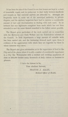 [Report of the Medical Officer of Health for Westminster, City of].