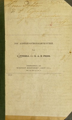 Credit: Die Anstrengungsalbuminurie / von I. Jundell und K.A.E. Fries. Source: Wellcome Collection.
