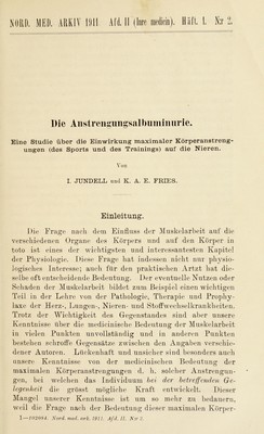 Die Anstrengungsalbuminurie / von I. Jundell und K.A.E. Fries.