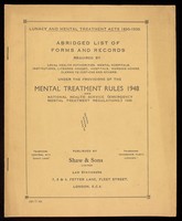 Lunacy and Mental Treatment Acts 1890-1930. Abridged List of Forms and Records required by local health authorities, mental hospitals... under the provisions of the Mental Treatment Rules 1948 and National Health Service (Emergency Mental Treatment Regulations) 1948