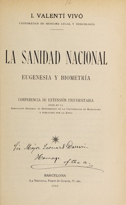 Credit: La sanidad nacional : eugenesia y biometría / I. Valenti Vivó. Source: Wellcome Collection.