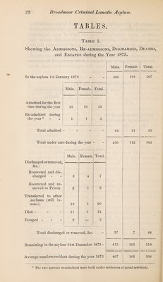 Credit: Reports of the superintendent and chaplain of Broadmoor Criminal Lunatic Asylum, with statistical tables, for the year 1873. Source: Wellcome Collection.