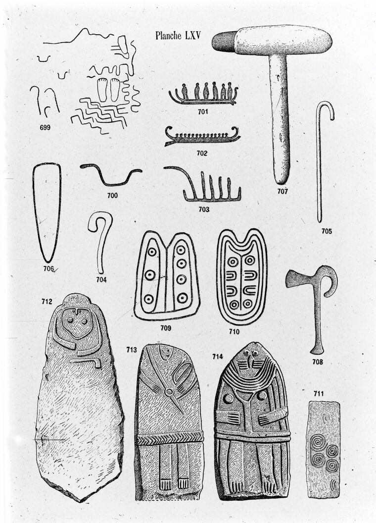 M0015050: Illustration of Bronze Age sculptings on megaliths in various countries. Public Domain Mark. Source: Wellcome Collection.