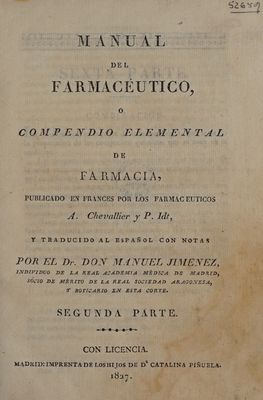 Credit: Manual del farmacéutico ... / Traducido al español con notas por el Dr. Don Manuel Jimenez. Source: Wellcome Collection.