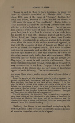 Investigation into the disease of sheep called "scrapie" (Traberkrankheit, la tremblante) : with especial reference to its association with sarcosporidiosis / by J.P. M'Gowan ; with an appendix on a case of Johne's disease in the sheep.