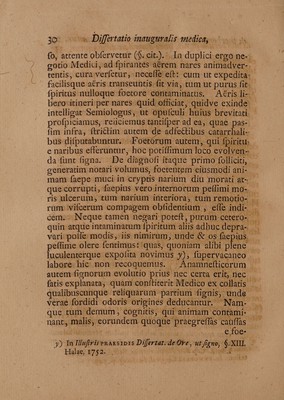 Credit: Dissertatio inauguralis medica de morborum signis quae a naribus desumuntur ... / [Christian Gottlieb Roll]. Source: Wellcome Collection.
