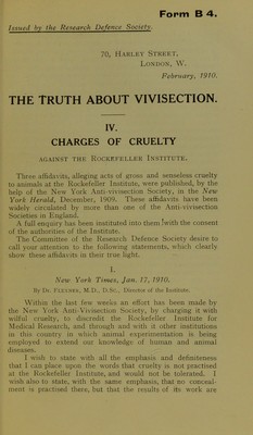 Credit: The truth about vivisection : pamphlets and leaflets published by The Research Defence Society during February-July, 1910. Source: Wellcome Collection.