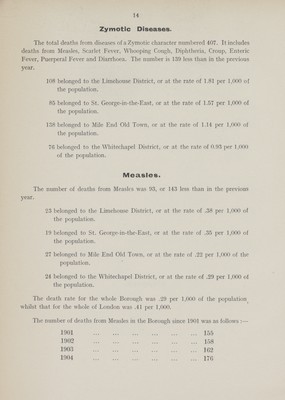 Credit: [Report of the Medical Officer of Health for Stepney]. Source: Wellcome Collection.