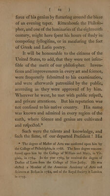 Credit: An eulogium, intended to perpetuate the memory of David Rittenhouse, late president of the American Philosophical Society, delivered before the Society in the First Presbyterian Church, in High-Street, Philadelphia, on the 17th Dec. 1796 ... / [Benjamin Rush]. Source: Wellcome Collection.