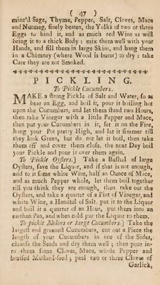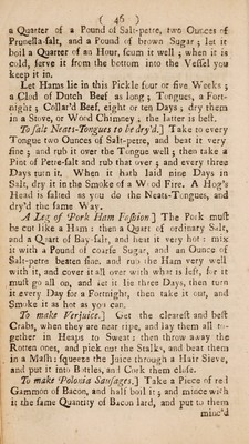 ![Yolk of an Egg ; then take half your Tripe, andf fpread the above Ingredients upon if, on the fat Side, then put the other half upon it; and roll it as hard as yeu can, and bind it with a Fillet, and then put the Spit through it, and bade it with Butter ; it will rake as much Reading as a Fillet of Veal. The Sauce is only Butter and Gravy : When it is done, take off the Fillet, and ferve it. To flew Beef-Stakes,] Take the Stakes off the Rib, and half broil them, and put them in your Srew-pan, cover’d with Gravy ; let them be well feafon’d with Pepper and Salt 5 roll up a bit of Butter and Flour, and the Yolk of an Egg, and throw it in $ ferve it with a few Capers thrown over ir. To roafl a Chit.e Mutton.] Fiift raife up the- Skin from the Chine-bone, a little downwards ; then take fome dices of lean Bacon feafon’d with Pepper, and roll’d Civcs and fhred Parllev, and fpread them over the Chine, and lay Bards of Bacon over them, and turn the Skin over it j tie the Chine with Tape and put white Paper over to prevent difcolouring ir, rtad it at a clear Fire 5 in roafting, throw Crumbs of white Bread over it : when.enough, ferve it with a Repalia of Cucumber'. To roafl Venifon.] Alter the Haunch is fpitted, beat the Whites ol three or four Eggs, and fprinkle in fome of the bed Flour, and rub it over your Meat with a Feather ; bade it with fweet Butter, and di idge it with Flour. For your Sauce, boil Claret, a little Pepper, Mace, Salt, Gravy and Butter y thicken it with gra'ed Bread. To make Muflard.] Chufe good clear Seed, and pick it, and walh it in cold Water ; drain ir, and rub it very dry in a clean Cloth ; then pound it in 4 Mot tar, with the bed white Wine Vin-egar, and . D 2 drain](https://iiif.wellcomecollection.org/image/b30504193_0049.jp2/full/800%2C/0/default.jpg)