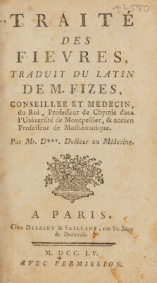 Credit: Traité des fièvres / traduit du latin, par Mr. D***. Docteur en Médecine. Source: Wellcome Collection.