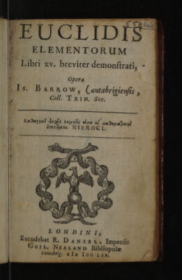 Euclidis Elementorum libri XV breviter demonstrati, opera Is. Barrow / [Euclid].