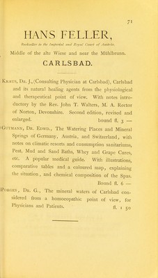 Medical guide to the use of the mineral waters at Carlsbad / I. Kraus.