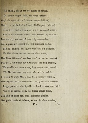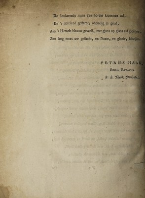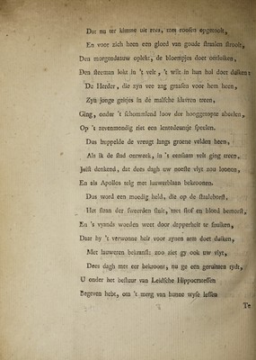 ![j(PV ■ v. v'-1 - * % r . r. y - ■ $ • v • ■' ‘ ■ ■ ;-v-*b-v? • -*' y* *>' De flonkerende maan zji> horens krommea zal r. En ’c tintelend geftarnt, oneindig in getal, / Aan ’s Hemels blaauw gewelf5 met glans op glans zal gloeijerr,. Zoo lang moet uw gdlacht, en Naam, en glorie, bloeijen. v PETRUS II A A K* V'.- Brila Batavus. S. S, FheoL Studiofu& / : v ' •: m i’ r; ,, X / - » * - * \ ‘ > r f r ! & \ * f’ ■' ■ - $W]](https://iiif.wellcomecollection.org/image/b30788456_0048.jp2/full/800%2C/0/default.jpg)