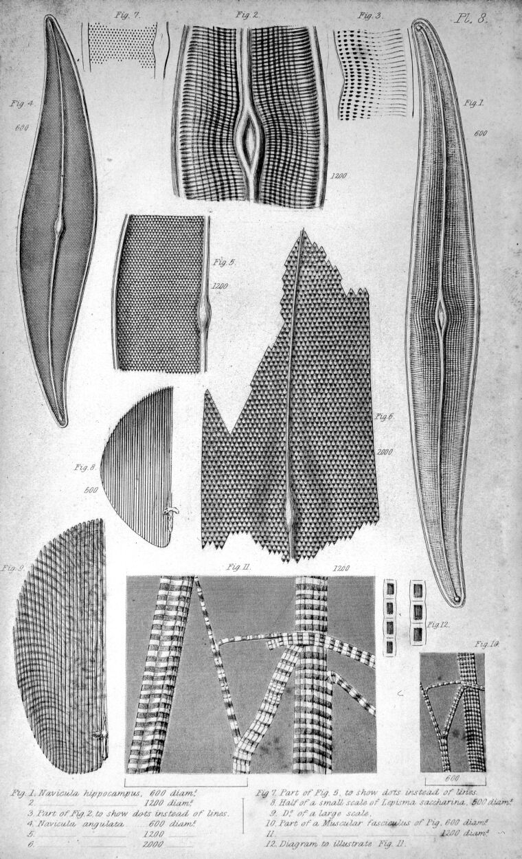 M0016946: Illustration of a series of test objects for determing the quality of achromatic microscopes, 1848. Public Domain Mark. Source: Wellcome Collection.