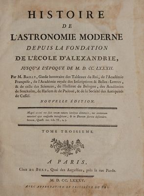 Histoire de l'astronomie moderne depuis la fondation de l'école d'Alexandrie, jusqu'à l'époque de M.D.CC.XXX / Par M. Bailly.