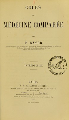 Cours de médecine comparée : introduction / par P. Rayer.
