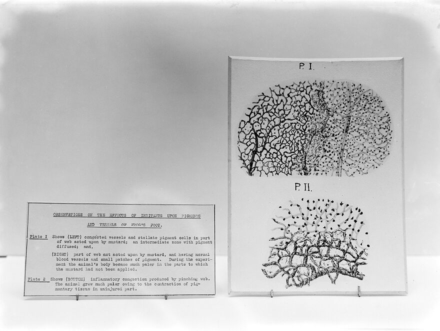 Credit: M0007789: Observations made by Joseph Lister on the effects of irritants upon pigments and vessels of a frog's foot. Source: Wellcome Collection.